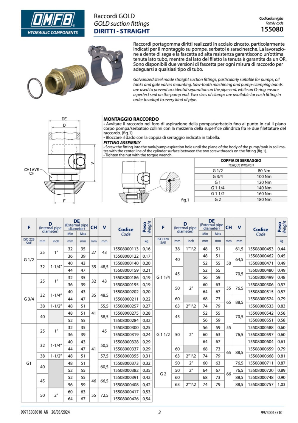 OMFB SAUGANSCHLUSS 1" DN50 0°